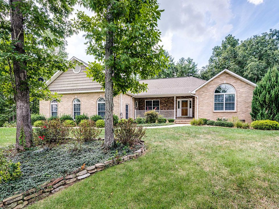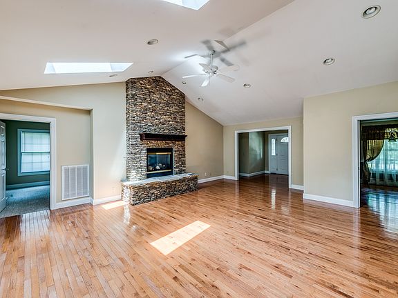 Custom Built Luxury home in the River Chase Sub. Be greeted by beautiful natural hardwood and rooms full of sunlight. An open, split bedroom floor plan with stunning vaulted great room featuring sky lights and bay windows. View the stars while cozied up to the stack stone natural gas fireplace. Host family and friends in the formal dining room featuring French doors. Even the modern kitchen is spacious and full of light. All the better to highlight the custom cherry cabinets, spacious counters, snack bar, island with Jenn-Air, and adjoining breakfast nook. Other features include: His&Hers vanity and whirlpool tub in master, separate laundry room with utility sink, walk-in closets, oversized 2 car garage, and beautiful, well maintained lawn which can be enjoyed from the back deck.