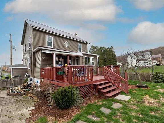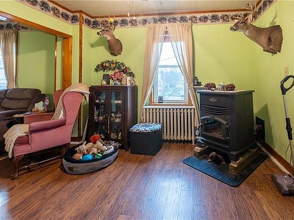 MOVE IN READY 4 BEDROOM (2 CAPTIVE) 1 1/2 BATH HOME WITH MANY NEWER UPDATES AND TRANSFERABLE WARRANTIES. LARGE HEATED DETACHED GARAGE WITH NEWLY BLACK TOPPED DRIVEWAY (2017) WITH 6 SPOTS FOR OFF STREET PARKING. (2017) NEW WINDOW WORLD WINDOWS, METAL ROOF (BOTH WITH TRANSFERABLE WARRANTIES), OIL HOT WATER FURNACE-SERVICED YEARLY, WHOLE HOUSE BLOWN IN INSULATION IN WALK UP ATTIC (2014), NEW LAMINATE WOOD FLOORS IN LIVING ROOM AND DINING ROOM. PELLET STOVE IN LIVING ROOM, WOOD BURNER IN GARAGE. LARGE REAR DECK-PARTIALLY COVERED AND FENCED YARD WITH 2 STORAGE SHEDS. 2 SEPARATE ELECTRIC SERVICES-GARAGE & HOUSE. DRY UNFINISHED BASEMENT WITH PLENTY OF HEAD ROOM TO MOVE AROUND. HARDY FRUIT TREES AND BUSHES IN YARD.