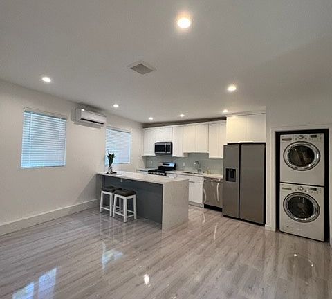 Welcome to this fully remodeled, private 1 bed and 1 bath ADU located in safety residential area. This beautifully designed unit features large window with plenty of natural light , making the space bright and inventing - Ideal for single professional or a couple - Must see. The open concept floor plan includes a modern kitchen with an island, in unit washer and dryer, AC, and a gated private entrance. Enjoy a spacious backyard, additional storage space and 2 parking spots within the gate. *conveniently located near USC and Koreatown - just 7 min. away *Easy freeway access makes communing a breeze. Owner pays for water, sewer and Trash. Renter is responsible for gas and electric. Last month's rent due at signing.