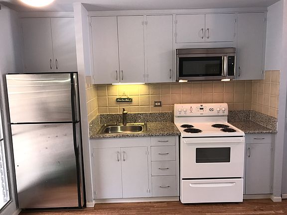 Palolo Valley studio with full kitchen and one bathroom and one assigned parking. Available now. Secured concrete building with elevator and laundry room. Quiet end unit on upper floor catches cool trade wind breezes and also has A/C for warmer days. Convenient location 5 minutes away from restaurants, yoga studios, coffee shops, banks, parks, Chaminade, and post office. 10 minutes to UH, KCC, Waikiki, and Kahala Mall. Small outdoor lanai to enjoy beautiful valley views. Rent includes water/sewer. Tenant responsible for their own electric, cable/internet, and phone. Unit has a small table with two chairs,rolling kitchen table, and queen sized bed frame with mattress but can also be unfurnished if desired. No pets or smoking. Tenant responsible for electricity, internet, and phone. Water is included in rent. No smoking. No pets.