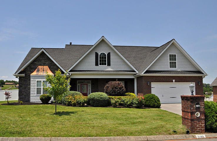 3 bed/3 full bath 2 car garage rancher home in quiet neighborhood. Nice deck view of the surrounding valley. Extra wide driveway supports vehicles to not block garage door. High end finishes throughout, 16' high vaulted ceiling in Great Room and Kitchen, upscale ceiling fans and chandeliers, tile floors, wood floor in Foyer and Dining Room, hand scraped hardwood in Great Room and Master Bedroom, high end cabinets, granite counters, stainless steel appliances with 2 year new natural gas stove, large pantry, alarm system, lighted trey ceiling in master, Hunter Douglas blinds, vinyl privacy fenced backyard with 10 foot wide gate, Trex deck 16 x 22, natural gas stone fireplace, upstairs loft/bonus room with full bath, his and her walk in closets and bathroom sinks, whirlpool jetted tub. 12' x 16' vinyl siding storage building with 6 x 12 overhead shelf. Dual function heating, heat pump and natural gas furnace. Natural gas tank-less water heater. Conveniently located between Knoxville and Gatlinburg with Sevier County taxes!