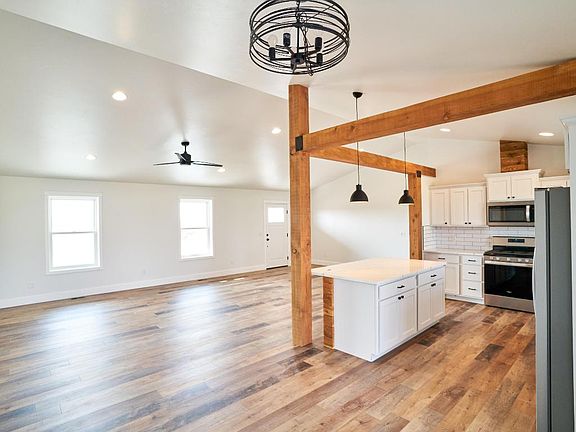 Come check out another beautiful new build by Cross Timber Homes. This stunning home sits on a 2-acre lot with panoramic views of the mountains from every room. The large covered front porch welcomes you into the heart of this open floor plan with vaulted ceiling and rustic wood touches throughout. The kitchen has gorgeous quartz countertops, soft closed white cabinets, stainless steel appliances with a large island for extra seating and storage space that is complimented with a very large pantry. The master suite has a tray ceiling with wood beams and a sliding barn door which opens to the luxurious master bath, which has a double sink vanity with granite countertops and a sit down make up area. It also has a large tile shower complete with a rain head and a spacious walk-in (continued)..