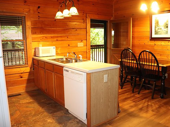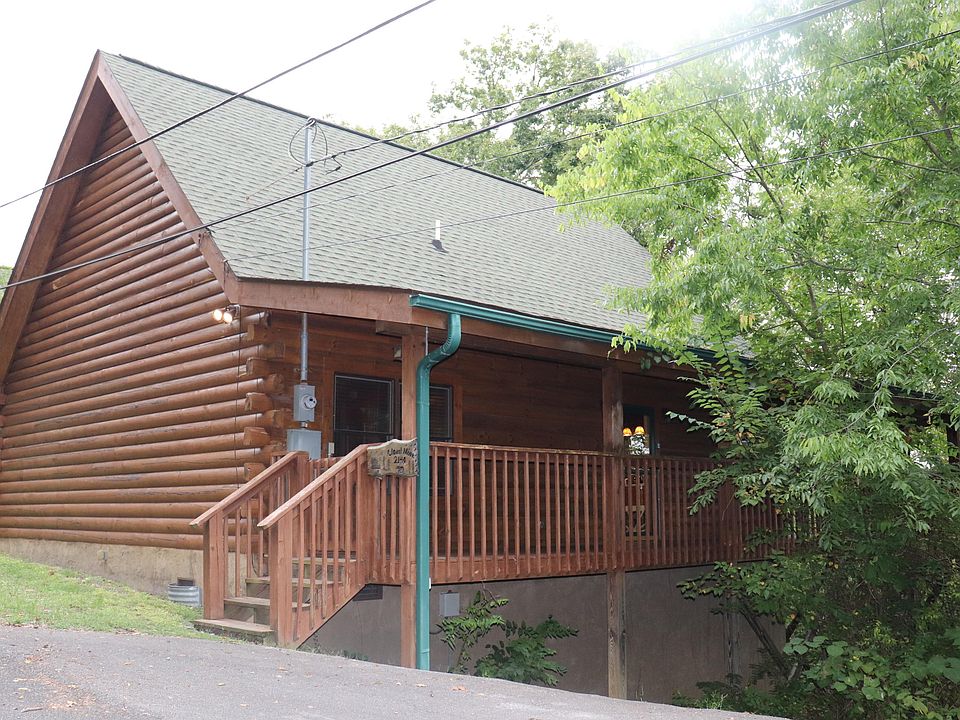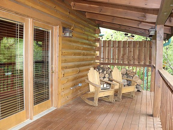 Well maintained and beautifully decorated authentic log cabin with very nice view of the Smokies! 1 level with handicapped accessible doorways: walk-in shower in bath #2. Lots of upgrades like eng hardwood floors; tiled bath floors; new lighting interior and exterior; log furniture, new LR furniture. Rental ready, complete with the dishes!Overnite rentals encouraged by individual or reputable companies. Extremely reasonable resort fee. Includes resort pool, some security, groundskeeping for common areas, picnic pavilion, trash dumpsters.Future potential to open loft area for additional bonus room/sleeping area/game area.