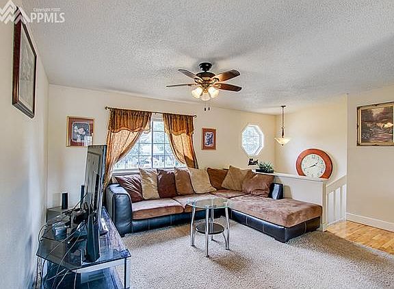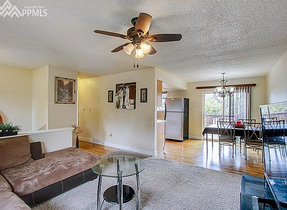 This beautiful 4 bed, 2 bath home is perfectly located in Pikes Peak Park. This home is close to parks, shopping, quick airport access, and a short commute to I-25. The large fully fenced backyard is great for family outdoor activities. The upper level features the master bedroom, a second bedroom, full bathroom, living room and open eat-in kitchen. The lower level is fully finished offering two bedrooms, a full bathroom, laundry room, fireplace and a family/rec-room with dry bar. The eat-in kitchen overlooks the walkout deck and mountain views.
