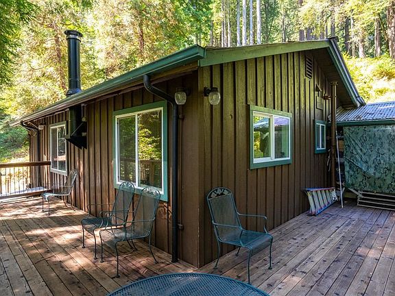 Gated retreat near historic Sturgeon's Mill! Welcome home to this quaint and charming cabin amongst the redwoods. 1 bedroom, plus an office (which is currently used as a 2nd bedroom) and 1 bathroom. Nestled on a quiet and secluded 2.5 acres, relaxation awaits. Forest views from every room and a large wraparound deck that's perfect for entertaining! Plenty of storage in the basement/workshop. Lots of trails to roam the acreage and a path leading to a hilltop picnic area in the sunshine awaits. A scenic setting and quiet location yet only minutes to Graton and Sebastopol. Experience the rural lifestyle and tranquil refuge of this woodland property! Ideal weekend retreat or full time residence. Fully updated, insulated and on a newer foundation. New central heat, retaining wall, water treatment system, paint, floors, bathrooms, kitchen, windows, deck.... This cabin is renovated and completely turnkey which is a rare find in this location.