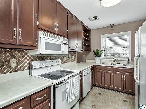 The Plantation South condo community offers a convenient, low maintenance lifestyle in the heart of South Huntsville. HOA offers a nice pool area! Quality tile floors greet you upon entry in the spacious foyer hall (with guest powder bath). Attractive wood flooring spans the living room and dining area. A wonderful sun room has pretty views with tile floors, ceiling fan, and newer windows. This space could be a great home office or play area. Kitchen offers painted cabinets with full appliance package including dishwasher, built-in microwave, refrigerator and upright washer/dryer units in the laundry room. Newly installed carpeting in both bedrooms, with nice tile and recent paint too!