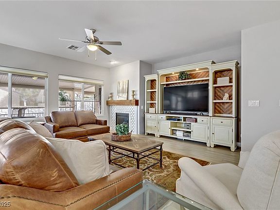 Tastefully updated single-story home in desirable Sun City Anthem. Featuring 3 bedrooms, 3 bathrooms and a dedicated home office, all spread over 2,400 sq. ft.(2,096 main house + 304 casita)of meticulously designed living space. Enter through your gated courtyard w/mature landscaping and custom iron privacy door, where you are greeted by an open floor plan offering a seamless flow. Filled with natural light and modern finishes of luxury vinyl plank flooring, quartz counters, two-tone cabinets and stainless steel appliances. An oversized island & breakfast bar offer endless opportunities. The great room showcases a stunning fireplace w/custom wood mantle. Primary suite features walk-in closet, spa like bath w/separate tub & shower and rear yard access. Enjoy your evenings under the extended Alumawood patio cover w/sunshades, gated pet area & private block-wall yard. Sun City Anthem offers world-class amenities, including 3 clubhouses, pools, fitness centers, pickleball, tennis and more!