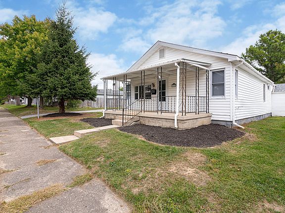 Tired of paying rent? View this affordable 3 bedroom home on 2 city lots. Vinyl siding, covered front porch, vinyl replacement windows, LVP flooring, fresh interior paint. 2 car detached garage.