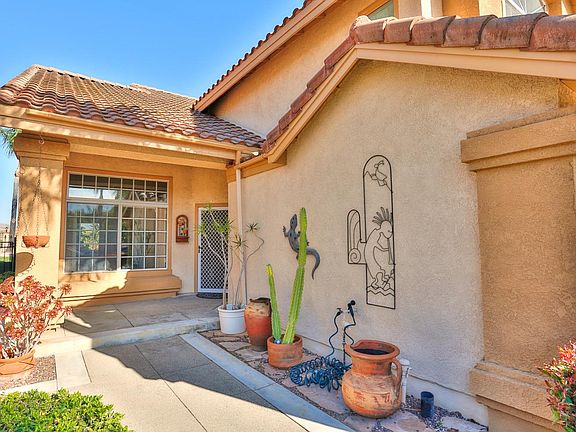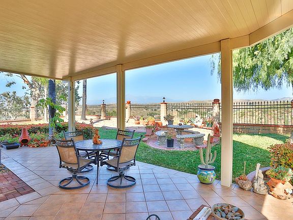 FIRST TIME ON MARKET. FORMER MODEL HOME. Ultra clean. Lowest price per square foot in this desirable North Reche Canyon area. Near hiking, shopping, and restaurants. Captivating panoramic view from San Jacinto mountain range to the San Bernardino mountain range. This large home has a modern floorplan with open, flowing and well lit design. Very large kitchen with walk in pantry room, granite counters, stainless steel appliances, and tile floors. Formal living and dining rooms. Spacious informal dining area, and family room with fireplace. The view is breathtaking. Take some time to pause and gaze, it is truly remarkable. ALL bedrooms are oversized. One bedroom and full bathroom downstairs makes this suitable for multi-gen living. Upstairs bonus room is HUGE and is ideal as a game room, theater room, or a 5th bedroom. Master bedroom has split vanity arrangement, a large L-shaped closet at 60 square feet, and takes in that view! Flooring upgraded with custom tile work up staircase, and banister upgraded to wrought iron spindle design. Finished garage. Lots of upgrades including HVAC, water heater, etc. Enjoy mature grapefruit, and avocado trees. Lush landscape in front and back. Lot would easily fit a pool. This special home has NEVER been on the market since the builder sold it as a model. Do not miss this rare opportunity to own this one of a kind treasure of a home.