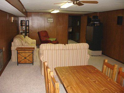 Take a look at this and you will buy just in time for stormy weather. Large finished basementwith family room, fire place, game room upstairs. 3 Bedroom, 2 Bath covered deck.Garage has a large workshop.