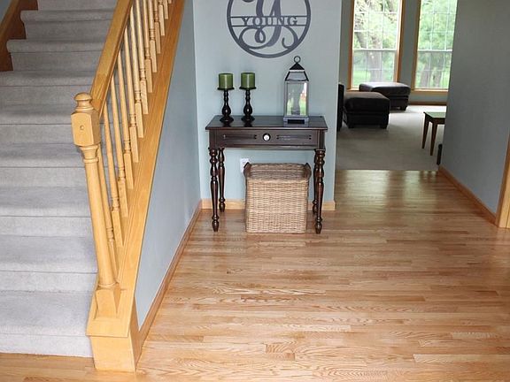 Please note: House was sited on the .59 acre lot to accommodate a third stall garage. Beautifully maintained 4 bedroom 3.5 bath home located in a wonderful wooded neighborhood in Bowman Ridge East. Wood flooring in the foyer welcomes you into the neutrally decorated 2-story home offering an open floor plan with a spacious kitchen overlooking the family room with gas fireplace and wall of windows to the serene setting, private park-like backyard. The kitchen boasts wood flooring, shaker style cabinets, breakfast bar & the microwave, stainless steel refrigerator, dishwasher & built-in oven remain. The kitchen also flows into the vaulted dining/sun room with tile flooring and easy access to patio & backyard. Formal dining room, main floor den with French doors and main floor laundry with lockers, soaker sink and electric & gas hookups. The second level master suite features a large walk-in closet, den/sitting area & private bath with double sink vanity, 3 additional bedrooms & main bath with newer facets. Finished lower level family/rec room with second gas fireplace, built-in bookcases, exercise room, wine closet, full bath and storage. Many amenities include 6 panel doors, window treatments, newer furnace & A/C, newer tankless water heater, vaulted ceilings & some newer light fixtures. Close to shopping, restaurants & walking distance to walking/bike trail. (Note: Beautiful wood flooring is freshly refinished May 2017)