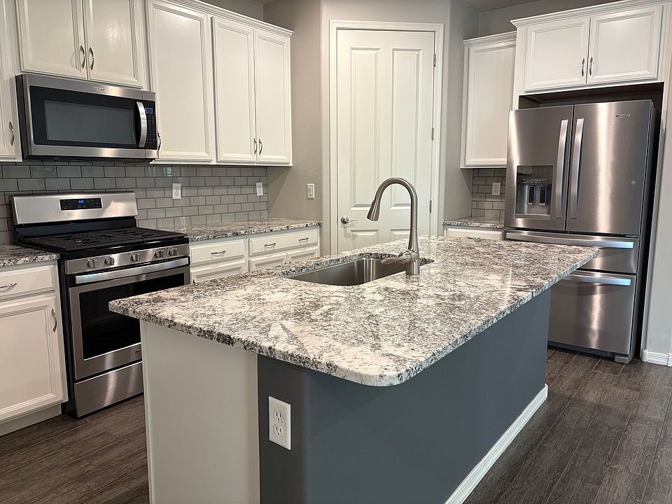 Turf and paversSplit bedroom floorplanNicely finished backyardLarge granite islandGreat roomOpen concept