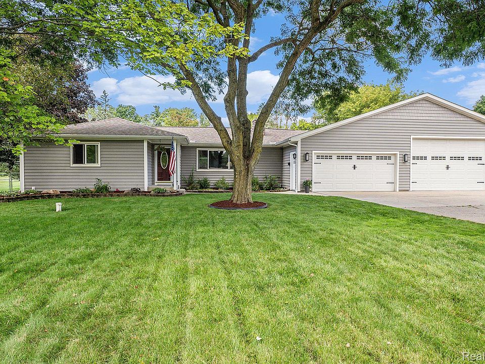 The charming remodel, updated Ranch sets in a park like setting with first floor laundry, granite counters, and two full baths. If you love to entertain, this has the space with a spacious living room, a full basement with wet bar and fireplace. The fun continues outside with a fenced backyard that includes a large 20'x40' stamped concrete patio which leads to a beautiful 33' heated pool with a cedar deck. Includes Sonos Audio System inside and outside. This house provides two attached garages - One is 20'x22' and the other is a heated 22'x74' garage. Think of the options for this type of storage: motorhomes, trailers, boats, recreational vehicles, play space, etc . . . Great Location! Close to shopping and Highways!