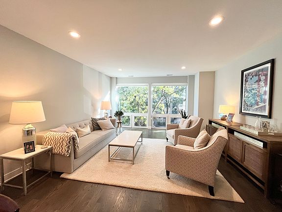 This amazing sunny duplex-up condo is over 2500 square feet and checks all the boxes! Built new in 2017 and located on a quiet and lovely street in Ukrainian Village, this all-brick building has the quality you should expect that includes cement in between floors, high ceilings, real oak hardwood floors throughout, floor to ceiling windows, and custom closets everywhere you turn. South facing, there are three levels starting from the second level up. A gorgeous wide-open layout features a gourmet white kitchen that includes a huge island with quartz countertops, a wine fridge, microwave, under-mount stainless steel sink and designer lighting. The other half of the kitchen has white subway tile backsplash, Professional series Viking stainless steel appliances including a double oven, 5 burner gas cooktops with dedicated Viking exhaust hood and French door Viking fridge. Pantry closets have easy access pullouts and there is an additional closet for more pantry space. The family room has a floor to ceiling tile fireplace with gas log and built-in area for tv placement. Outside is a good-sized deck outfitted with a gas line for gas grill and available space for table and chairs. The second level features three bedrooms. The large and elegant primary bedroom has a full wall of floor to ceiling windows, a walk-in closet with custom built-ins, and a primary bath with radiant heated flooring, a double bowl vanity and frameless glass steam shower with a bench. Two spacious bedrooms, a stylish full hall bath with soaking tub, a laundry closet with full size side by side front loading washer/dryer with built-in cabinetry above and a full linen closet rounds out this floor. To top it all off an interior staircase leads to the rooftop level. This amazing deck features gas, water, electric and wiring to install an outdoor tv. A custom-built trellis is perfect to lounge under. Tons of space to accommodate outdoor couches, a dining table and chairs, coolers, and planters too. One garage space is included with this home. Walk to a plethora of dining choices, cafe's, grocery, and other shopping along Chicago Avenue, Division and Damen. Easy access to I-94, and an easy walk to the Blue line Division stop.