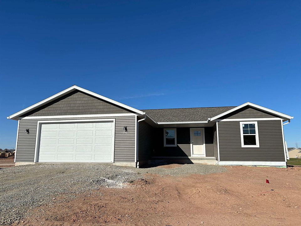 New home from Schmidt Bros. Custom Homes, Inc. featuring 3 bedrooms and 2 full baths. The cathedral ceiling in the kitchen and living room add a volume feel to the home. Black stainless appliances are included in the kitchen. The primary suite includes a walk in closet. The mudroom features a bench and hooks, a drop center and the laundry area. Home includes a water softener and a active dampness and radon control system. A driveway and patio are included. Estimated completion date is Dec 11.