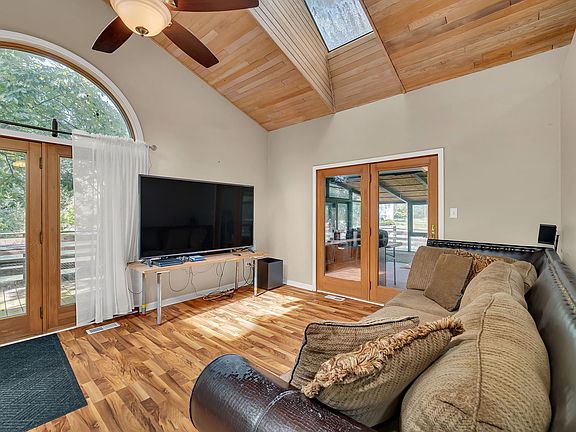 Discover this charming brick ranch set on a quiet street surrounded by mature trees, offering peace and privacy with beautiful pond views. Updates include furnace (2024), A/C (2018), washer/dryer (2024) and roof (around 10 years). This home features 3 bedrooms and 2 full bathrooms on the main level, including a primary suite with a walk-in closet and private bath. The open-concept kitchen, dining, and living areas showcase vaulted wood ceilings with oversized skylights, filling the space with natural light. A stunning stone, see-through fireplace serves as the centerpiece of the main level. Enjoy the outdoors from the wraparound deck overlooking the pond or the enclosed porch just off the kitchen-perfect for morning coffee or evening relaxation. The basement provides even more living space with a large family room, additional bedroom, full bathroom and a spacious crawl area for storage. Property includes a private well and septic system. This home provides a truly serene setting with modern comforts and is ideal for those seeking privacy, space and natural beauty. Ideal location just minutes from interstate access, schools, restaurants, bars, golf courses and so much more. Schedule your showing today!
