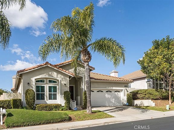 Welcome to the beautiful 55+ community of Palmia! This single level home is located on a single loaded street with lush landscaping. When you walk into this gorgeous home, you will be greeted by the beautiful luxury vinyl plank flooring throughout. The open floorplan is amazing and fantastic for entertaining! You can see all the way to the backyard from the moment you walk in the door! This home has been completely updated with new flooring, new windows, updated fireplace with floor to ceiling pencil stone, new built-in shelves with down lighting in the family room and new kitchen-complete with new cabinets, porcelain countertops, tile backsplash, under cabinet and pendant lighting and new appliances. The two bathrooms have been completely redone as well. There is even custom crown moulding throughout! In the secondary bedroom there is a built-in murphy bed that makes it convenient for family or guests to enjoy when they stay overnight. The backyard is perfect for entertaining your guests. It has been completely redone with pavers, new retaining walls and planters. It's a wonderful place to relax and enjoy the sunset! The home has also been completely repiped and the HVAC was replaced as well. The Palmia community is fabulous! There is an 18 hole putting green, tennis and pickle ball, fitness center, pool and spa, card and billiards room and so much more! Close to highways, shopping and entertainment! This is a home you don't want to miss!