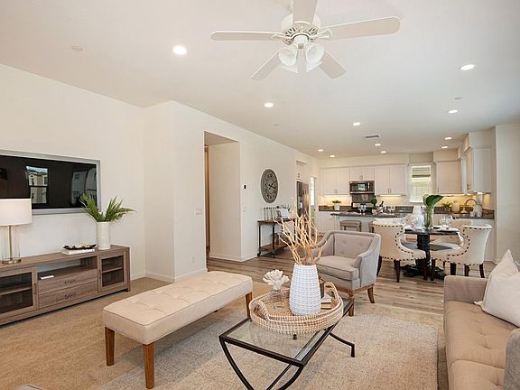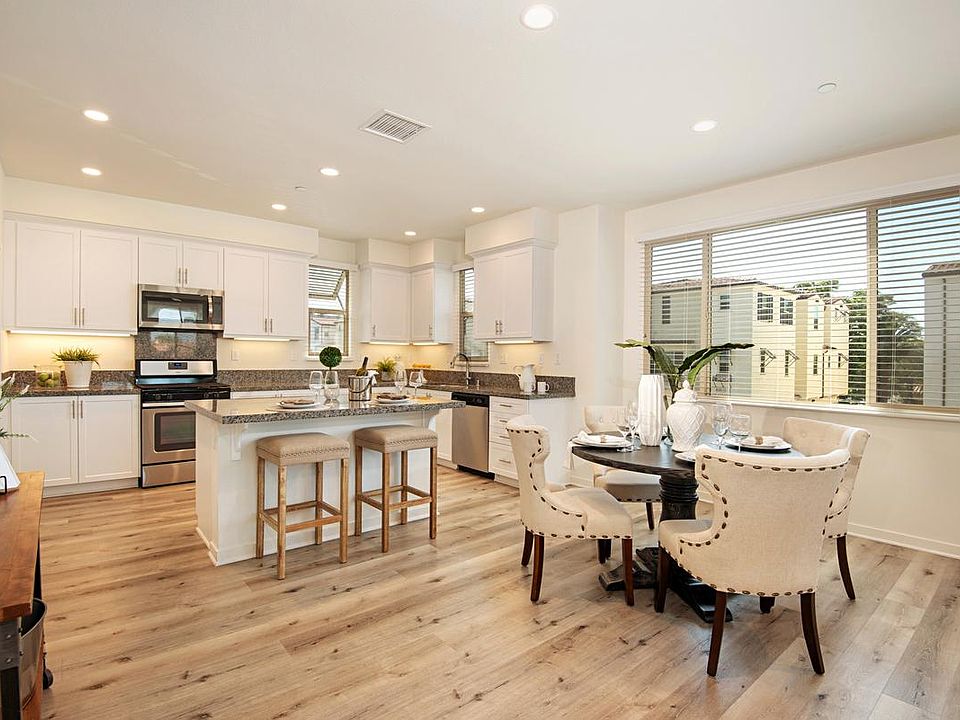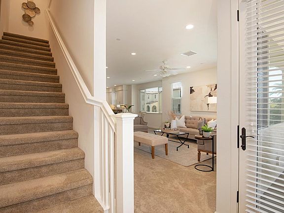 UPGRADED CORNER UNIT !! This modern townhouse is fully ready to welcome you with is numerous amenities, tasteful finishes, and is filled with light from the expansive windows. The home has dual master bedrooms with two additional bedrooms and three and a half bathrooms. One master bedroom is on the entry level floor adjacent to the foyer that leads to the garage one way and front door the other. This master bedroom has a full closet and personal bathroom. The main floor of the home has a half bath, beautiful kitchen with a refrigerator included, step in pantry, dining area, large family room and a covered balcony for relaxing. On the top floor is the additional master bedroom with a full walk-in closet, personal bathroom, two bedrooms with closets and a shared bathroom, linen closets, and the fully equipped laundry room with a washer and dryer included! It is smart home enabled, wired for data and additional storage cabinets in the garage. The home has dual A/C zones, newer blinds and ceiling fans in several rooms. Enjoy the nearby shopping, dining and Santa Margarita Lake !!