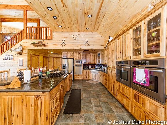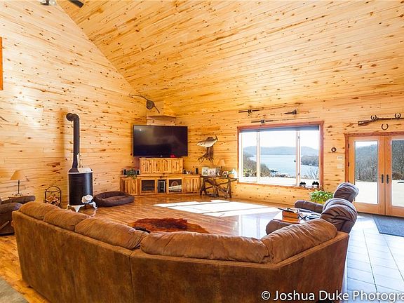 Custom built home facing east with unobstructed lake views & boat slip. Open floor plan with 12000 linear ft of tongue and groove Aspen from floor to the 23' ceiling. Main level living, appliances are catered for one to cook, wash and clean at eye level. Spalted maple wood flooring, walls of windows, oversized staircase to the loft area. This features a game room, 2 bedrooms, bath, bar area and a study. Open French doors to a 12 X 16 X 16 foot balcony treated with non-slip poly urethane coating.
