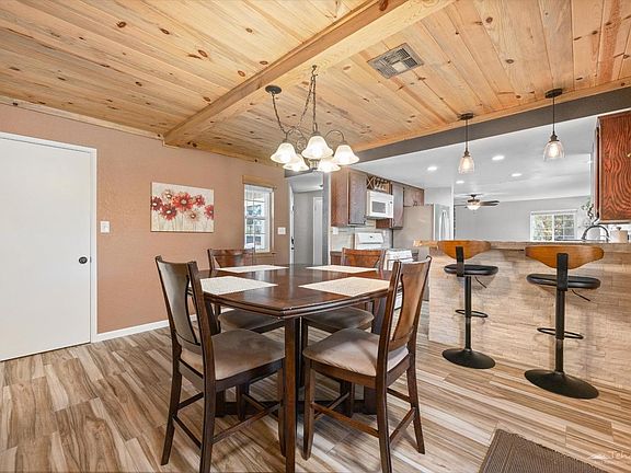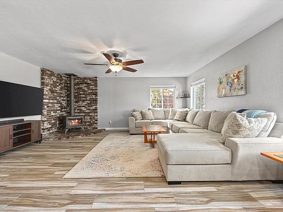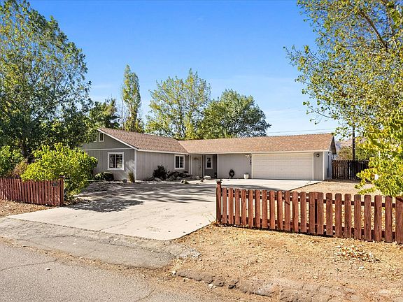 This Golden Hills Gem boasts a well-laid-out floor plan with a bright kitchen featuring custom masonry concrete countertops and a granite composite farm sink. The kitchen opens seamlessly to both the dining room and living room, where a brick hearth with a wood-burning stove adds warmth and charm. Recently painted, the interior has new flooring and upgrades throughout, giving the home a fresh and modern feel. Remodeled Guest Bath with custom tile shower. Gorgeous Remodeled Master Bathroom offers a touch of luxury with a custom walk-in shower, heated flooring, and a quartzite countertop vanity. With central HVAC, comfort is ensured year-round.Outside, the oversized lot provides ample space for RV parking, toys, and a beautiful Garden area complete with raised beds, fruit trees, and grapevines. A pond-less waterfall adds a serene touch to the front yard, while the covered patio, spa, and firepit offer perfect spaces for outdoor relaxation and entertaining in the generous and private backyard. The property also includes storage sheds for added convenience. Ideally located close to town and within walking distance to the elementary school, this home offers both practicality and charm in a desirable setting. All the things for $399,000!