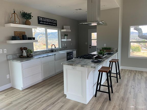 This quaint 3 bedroom, 2 bath home is absolutely adorable! Offering 1,255 sq ft of living space, in the highly sought-after neighborhood of West Golden Hills. This home has vaulted ceilings in the family room that is open concept living to the kitchen and dining. The family room picture windows create mesmerizing views and bring a feeling of nature into the home!!! The Kitchen has white shaker cabinets with soft close hardware, dovetail drawers, floating shelves, farmhouse sink and stainless-steel appliances. The master bath has a custom walk-in shower with a corner seat. The property has been leveled out in the backyard for many opportunities, RV, future BBQ or play area. The natural rock walls and oak trees accentuate the natural beauty of the property.House is completed with exception of electricity(waiting on Edison) and concrete to be poured.