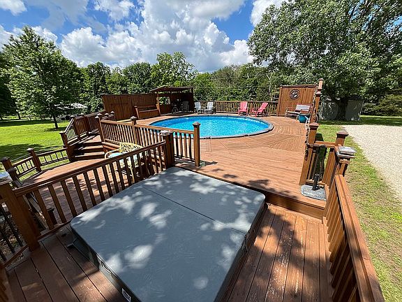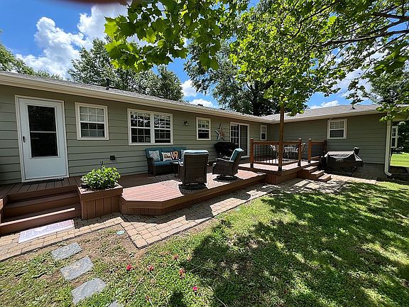 This beautiful 2,100 square foot home is located just east of Chanute, KS on 1.2 acres. Outside features a gorgeous hand crafted deck that includes a pool and hot tub. You will also find multiple storage sheds, detached oversized 2 car garage, large cement driveway and Trex decking on both front and back of the home. Inside enjoy the large family room and cozy up on a cold winter day to the beautiful fireplace that features an outside clean out. Updated kitchen that includes stove, oven, dishwasher, microwave and fridge. Granite countertops in the kitchen and bathrooms. Additionally, this 3 bed, 2 bath home has hardwood and tile floors throughout. Master bathroom features a jetted tub, walk-in shower and large walk-in closet. Call Dustin for more information (620-288-9056).