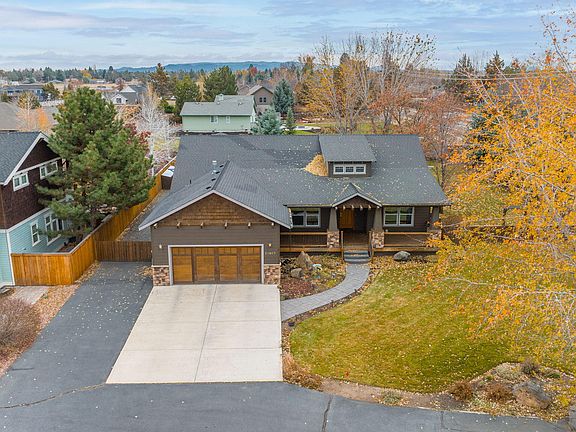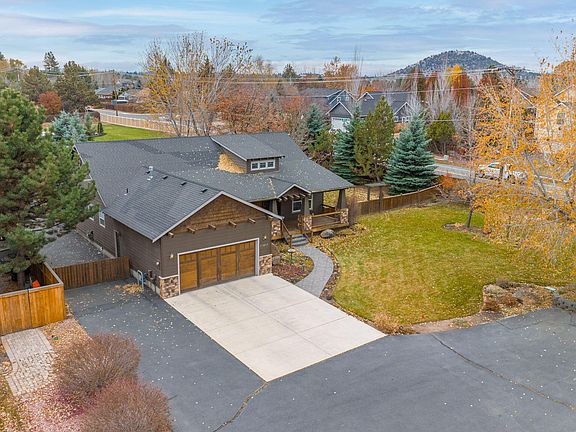 Spectacular NE Bend home on nearly ½ acre! This hard to find single level in Bradetich Park is the perfect combination of space and privacy yet within minutes of shopping and medical services on Bend's East side. The craftsman style home features 3 bedrooms plus a den/office and great primary bedroom separation. The vaulted great room features a stone surround natural gas fireplace, real hardwood flooring and a dining nook with built-in cabinetry. Large primary bathroom was recently updated to include a beautiful walk-in tile shower, tile flooring and solid surface double vanity. Outside, you will find enough paved parking for a boat and an RV. Nestled in the corner of the backyard is a nearly 400 sq ft woodworking/hobby room that is insulated and heated with covered and secured storage for lawn equipment. Enjoy evening BBQ's and get-togethers on the large backyard paver patio with built in firepit and decorative pergola.