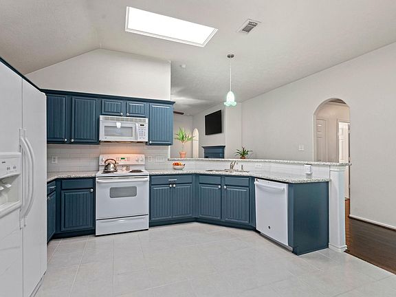 Welcome to your all brick, one-story Lennar Home. Nestled on a quiet cul-de-sac that backs up to the woods (no back neighbors!), in Hannover Village, conveniently located near 2920 and I-45. New roof December, 2020. Open floor plan, light paint colors, and plenty of windows make the home welcoming and bright. Updated kitchen with granite countertops, subway tile backsplash, and painted cabinets overlooks the living room with gas fireplace. Tile and wood flooring throughout the home. Master bedroom has a large window that overlooks back yard, and en-suite bath with a jetted tub, dual sinks, and walk-in closet. Backyard boasts a screened in back porch and brick pad, the perfect place for your grill, and plenty of space for entertaining.