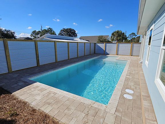 NEW CONSTRUCTION! Just Completed! Prime location, 7 minute walk to beach access. A great home to live in or investment property, SHORT TERM RENTALS ALLOWED. Lots of upgrades-9 foot ceilings with 2x6 walls filled with spray foam above minimum requirement, spray foam attic SAVE ON ELECTRIC BILL! *Oversized one car garage insulated, hookups for 2 big screen TVs for game room, electric car charger in garage. All appliances (washer and dryer not included) smart phone enabled including SALTWATER POOL equipment. The pool has an energy saving heat pump POOL HEATER and CHILLER. LVP flooring throughout house with custom cabinets, Large custom tile shower in master bath, CUSTOM WOOD RANGE HOOD VENT, and quartz countertops. Hardie plank siding, soffits, and fascia. Metal roof. Modern metal panel/ wood privacy fence. Impact windows and doors, no storm shutters needed.