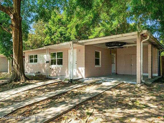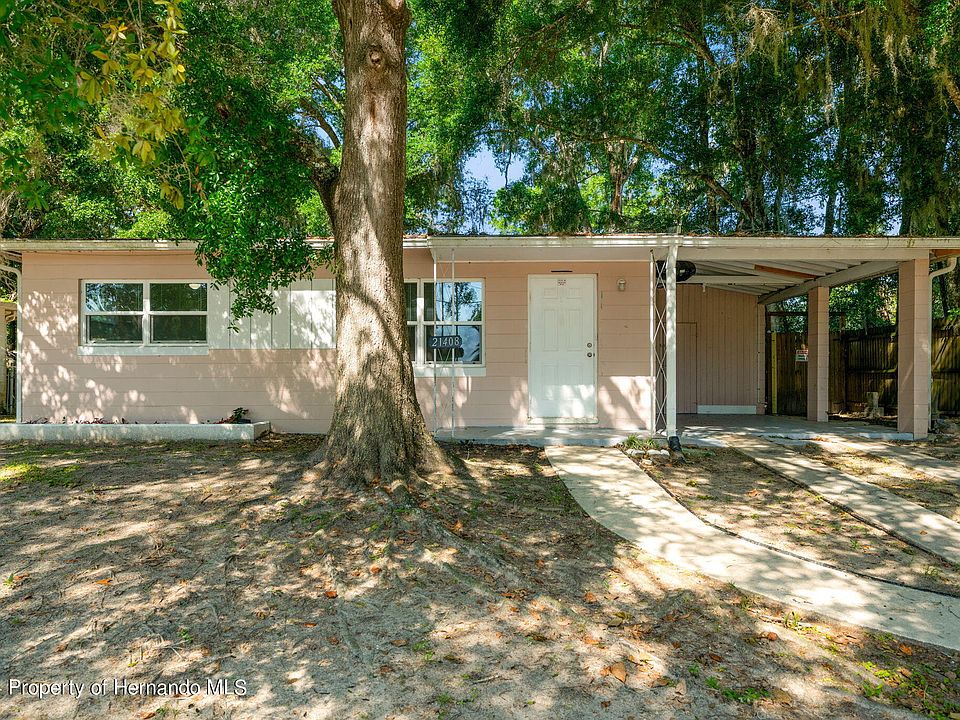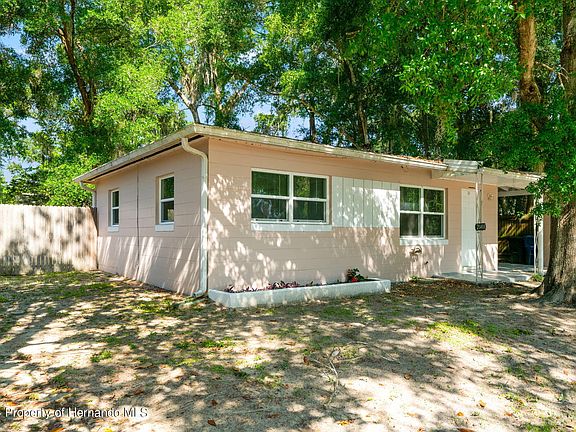 ACTIVE UNDER CONTRACT _ ACCEPTING BACK UP OFFERS Charming 2-Bedroom Retreat Near Downtown Brooksville! Nestled under the serene shade of majestic oak trees, this delightful 2-bedroom, 1-bath abode offers the perfect blend of comfort and convenience. Step inside to discover a cozy living space, terrazzo floors throughout (NO CARPET) and an open kitchen dining room combo with shaker style cabinets. Outside, a spacious carport provides shelter for your vehicle, a laundry room with extra storage space, while the expansive backyard beckons for outdoor adventures beneath the whispering branches of the oaks. Located just a few minutes away from downtown Brooksville, enjoy easy access to shops, dining, and entertainment. Perfect for a first-time home buyer! Don't miss your chance- schedule your showing today!