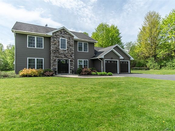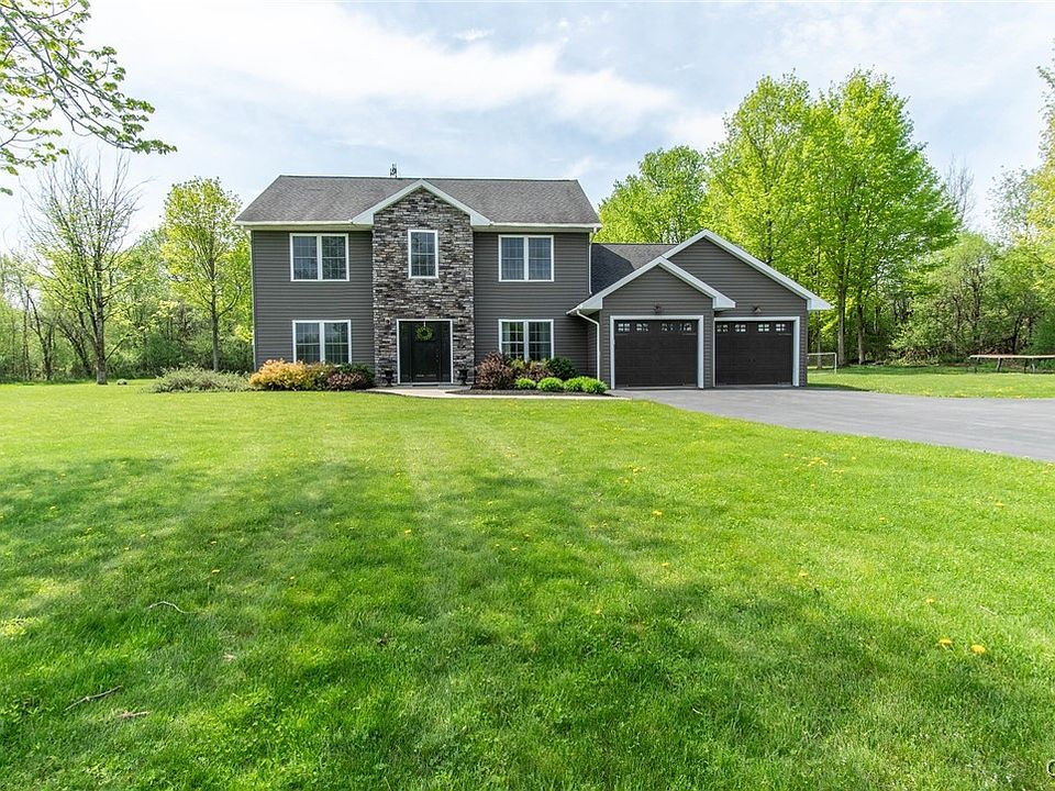 Welcome to this breathtaking 11 year young home! From the moment you walk through the front door you will be WOWED! The first floor offers big beautiful spaces with a 1st floor primary bedroom, including ensuite and walk in closet. The spacious, well appointed kitchen offers an eat in area as well as a more formal dining area... then there is the living room...HOLY MOLEY... so much natural light and tall vaulted ceilings this room is a show stopper! Additionally there is a convenient half bath, laundry area, pantry space, bonus space and an over sized garage! Upstairs there is a large "hang out" area as well as 3 great sized bedrooms and an additional full bathroom. Outside is the most perfect entertaining area and lush spacious lawn. All of this sits on just under 14 acres of park like setting with trails perfect for riding your side by side or just enjoying nature. Conveniently located just outside the city limits minutes to interstate 81, Samaritan Medical Center and about 20 minutes to Fort Drum. This is the 1st time this home is being offered for sale and what an opportunity for some lucky buyer, check it out quick before its gone gone gone!