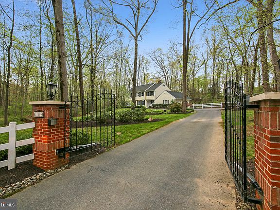Gorgeous, updated and private New England colonial on gated one acre wooded lot with creek. Sunny and inviting home features 3-level-living as well as a front patio off kitchen (amazing views to creek and old growth forest) and expansive backyard entertainment patio with grilling station and fireplace. 5BR/2.5BA with huge MBR and LR + DR with antique brick fireplace and barnwood wainscoting & ceiling beams evoking French country charm -- ideal for unforgettable dinner parties. Extensive hardwood flooring throughout. Fin Info + pre-approval with offer.