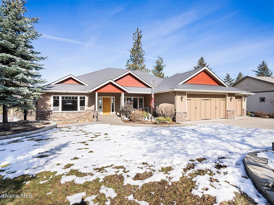 This exquisite home located near Hayden Lake offers stunning mountain views & impressive architectural design elements such as high ceilings, crown molding, & hickory hardwood floors. The great room is spacious & features built-in bookcases, sound system and a gas fireplace, perfectly situated to enjoy the Chef's Kitchen with stainless steel appliances, granite countertops, walk-in pantry and a dining nook. The main level includes a primary bedroom & a guest bedroom, both with an ensuite bathroom. The lower level offers 2 more spacious bedrooms, great room with gas fireplace & a bonus room that would be a perfect private living space with it's own entrance. Over-sized 3 car garage also has large workshop area with a view! Enjoy a breathtaking outdoor oasis with an open Trex deck as well as a covered patio perfect for relaxation or entertainment. Please refer to posted Feature Sheet - too many to list!! Excellent Price, Gorgeous Views, Amazing Features ~ Make this your Dream Home!