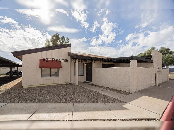 Indulge in the allure of this Tempe 3/2 townhouse, where vaulted ceilings and updated paint create an inviting atmosphere. Embrace the seamless flow of alluring wood and tile flooring, enhancing the contemporary charm of each room. The generously sized split master bedroom is a serene retreat, boasting a remodeled enclosed bathroom that exudes elegance. Comfort is paramount in the cozy rooms and updated baths. The convenience of a washer and dryer and carport parking elevates your lifestyle. Enjoy community perks with access to a pool and facilities, and unwind on your private tranquil patio. This distinctive townhouse offers an irresistible blend of modern comfort and community convenience.