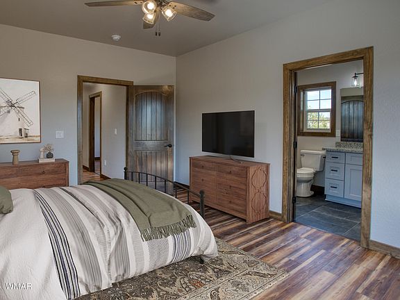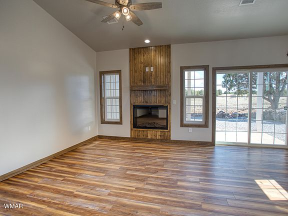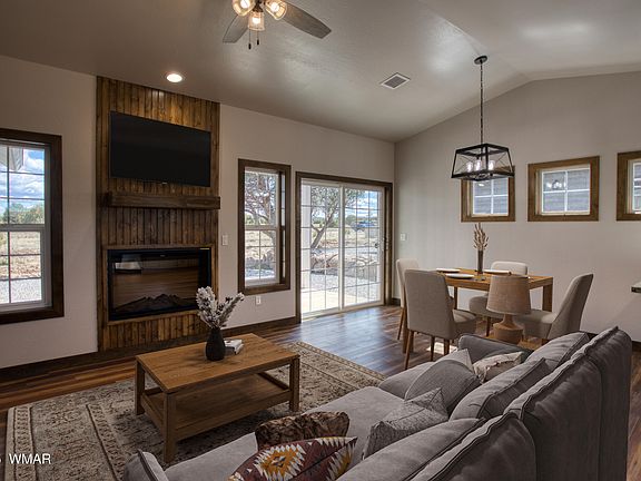 Discover the perfect blend of rustic charm and modern comfort in this stunning new-build mountain cabin in Show Low Bluff. The inviting board-and-batten front design, complemented by a landscaped front yard and paver driveway, exudes a welcoming country feel. Step into the open great room, where flowing wood-look LVP flooring, a vaulted ceiling, and an electric fireplace with a striking rock surround create a warm and inviting atmosphere. The beautifully designed kitchen offers peninsula seating, granite countertops, stainless steel appliances, a gas range, and stylish pendant lighting, making it an ideal space for gathering and entertaining. READ MORE The spacious primary suite is a true retreat, featuring a granite vanity, ample storage, a luxurious walk-in stone shower, and a large walk-in closet with a built-in storage system. A well-appointed guest bedroom and updated guest bath provide comfort for visitors, while a covered patio extends the living space outdoors, perfect for soaking in the mountain air. Experience the tranquility and charm of Show Low Bluff, this exceptional cabin is waiting to be yours!