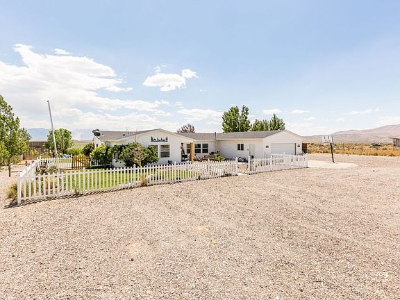 This one of kind property boasts views from every angle! Over looking the river and panaromic views of the Ruby Mountains. With over 20 acres there is plenty of room for all your animals or toys. Fenced and cross fenced for horses. Upon entering the home you will be greeted with a large front living room, new carpet throughout the main areas and an open concept floor plan. The master bedroom has a walk in closet and attached bathroom with shower and seperate soaking tub. The master bedroom also has french doors out to its own private patio. The Kitchen has concrete counter tops and updated appliances. The other two bedrooms are on the opposite side of the home along with the second bathroom. There is also a den/office that could possible be used as a 4th bedroom. Outside you will find an amazing back covered patio with mature landscaping adding to the privacy of this property. Along with the attached double car garage there is also a detached cleary shop building, horse barn/lean , green house and shed. This is one property you won't want to miss out on seeing!