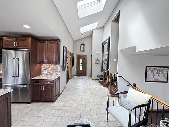 Welcome to this stunning 4 bedroom, 2.5 bathroom Forrester quad level home located in a highly sought after area of Schererville.This beautifully maintained home offers the perfect blend of space, functionality, and style. With four levels of living space, this home is designed to accommodate the needs of a growing family while providing plenty of room for entertaining and relaxation.Upon entering, you'll be greeted by a grand foyer with cathedral ceilings and skylights flooding the home with natural light. A large living room with french doors and custom blinds creates an inviting space for gatherings or could serve as office space. The kitchen boasts stainless steel appliances, a beverage refrigerator, upgraded lighting, and custom 42 inch maple cabinetry. Enjoy the ease of cooking while overlooking the family room on the lower level.The home features a total of four bedrooms, including a primary suite with its own private en-suite bathroom. The three additional bedrooms are beautifully appointed and feature ample closet space for everyone.The lower levels of this home offer even more room to stretch out with a spacious living room with gas fireplace and a large finished basement with pool table, large storage area, and crawlspace. Sump pump with battery back-up new in 2024, 50 gallon water heater new in 2025, and washer and dryer new in 2024. The attached 2.5 car garage is insulated and boasts plenty of cabinets for storage of household items and outdoor gear.Step outside to the backyard where you will find a spacious patio area with 2 cedar decks and a firepit, perfect for outdoor dining, barbecues, or simply relaxing while enjoying the natural surroundings. Natural gas hook-up available for gas grills. Enjoy the beautifully landscaped yard with a pre-paid Trugreen contract for 2025 included and a private well on property for watering the lawn.Located at the end of a cul-de-sac.