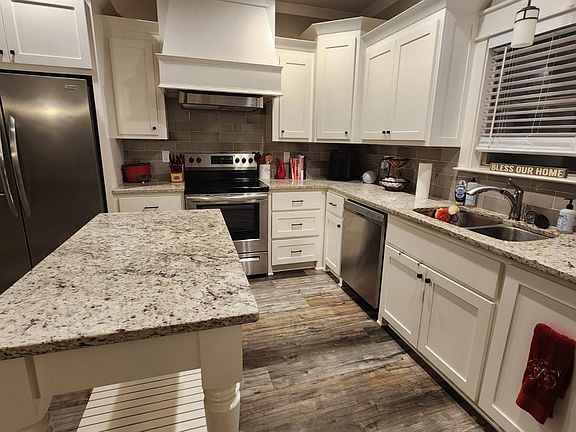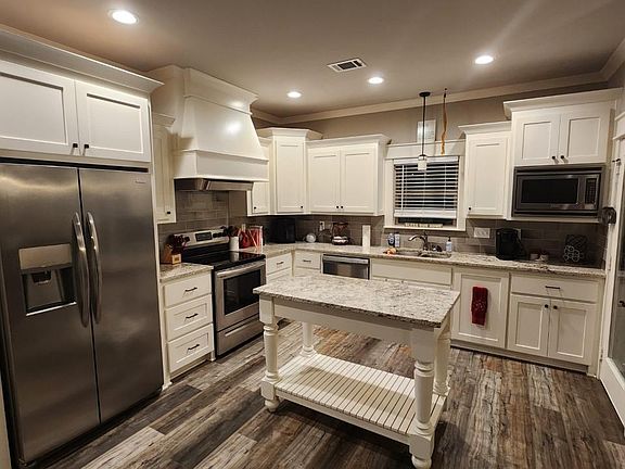 4 bedroom 2 bath home, crown molding throughout, nice kitchen with stainless steel appliances, granite countertops, island, luxury vinyl flooring in main areas, carpet in the bedrooms, ceramic tile in the wet areas, large walk-in closet, walk-in shower in master bath. 16x10 storage building with electricity, privacy fenced back yard, new roof fall of 2022, sitting on 1.21 acres. Come see this one today!