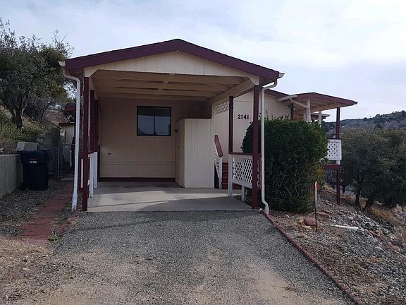 Great View location in the 55+ community of Prescott Canyon Estates. This home needs flooring and paint and is priced accordingly. Master bath has been remodeled, new windows installed on the East side of the living room. 2 storage sheds and an attached storage room, 1 car carport. As is owner cant make the cosmetic repairs and says get it sold.