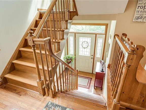 Welcome home to 2141 Huntington Court S in Franklin Park! This spectacular end unit, three bedroom townhome features solid all brick and cedar construction, a two-story foyer with 6x6 entry with hardwood flooring, leaded glass front door, two sidelights, and transom. Step into the living room and relax by the gas fireplace with marble hearth, wood surround, and wood mantle. The 21x12 updated eat-in kitchen has ceramic tile floors, ample raised panel cabinetry with under-cabinet lighting, built-in desk area with cabinetry, glass multi-pane walk in pantry, granite countertops, subway tile backsplash, stainless steel appliances, double stainless sink, and full glass French door out to rear 25x12 patio and yard. This home is great for entertaining indoors and out or in the finished basement, equipped with a wet bar area/mini fridge and additional half bath. Pull-down attic access with incredible storage, 26x17 two-car garage, and being so close to I-79, Rt 910, and Rt 19 tops it off!