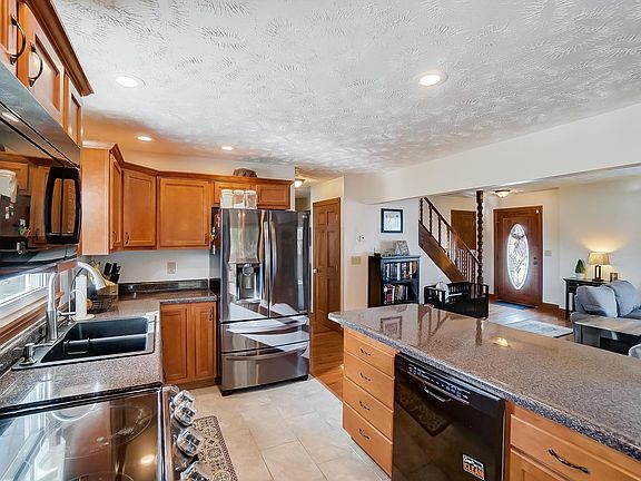 This beautiful, traditional home has been renovated from top to bottom. Located just 5 minutes from town yet sits peacefully in the country. 3 Beds, 4 FULL baths and a finished basement (apx 1,000 sq ft) makes this the perfect family home. Updated in 2016 to include; HVAC, roof, siding, electric, plumbing, energy-efficient windows, bathrooms, and kitchen with gorgeous stainless appliances. The master suite has it's own private bathroom, located on the first floor along with the washer and dryer. Alarm and camera system outfitted with night vision is a bonus! An elegant stained, stamped patio is perfect for summer BBQ's and the large shed in the back yard is equipped with electricity. 13 trees lining the property will continue to provide beauty and privacy as they grow.