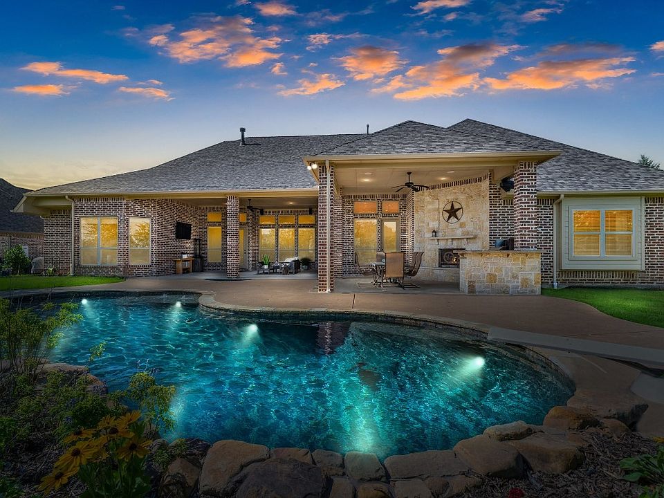 Get ready to be mesmerized by the extraordinary elegance of this custom Dave Williams home. Situated on a .65-acre plot in the highly esteemed Whispering Meadows community, it effortlessly combines beauty & functionality, leaving you spellbound. Built with meticulous attention to detail, this home offers an array of impressive features, & boasts of a thoughtfully designed layout. The beamed ceiling, arched entryways, bonus room with full bath & garage entry, & chef’s kitchen with Viking appliances, are sure to impress. As you step outside, you are greeted by a breathtaking & expansive outdoor oasis that will leave you in awe. Delight in the sight of a shimmering pool, inviting you to take a refreshing dip. The sprawling covered patio, adorned with a captivating stone fireplace, beckons you to cozy up and unwind. And the outdoor kitchen presents an ideal setting for embarking on outdoor culinary journeys. This home embodies an atmosphere of pure luxury & relaxation that is unparalleled.