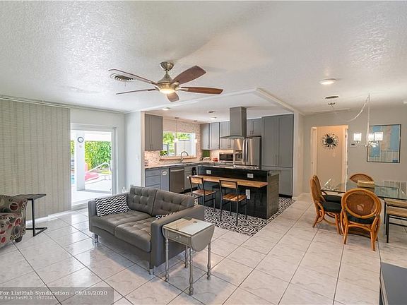 Wow! Stunning & completely remodeled 3 bed 2 bath home with tropical pool. Spacious corner fenced lot, 2 blocks to the new City Park/Village Art Plaza. New kitchen w/concrete counters, custom island w/snack bar & vented cooking hood, stainless steel appliances including a French door refrigerator, custom shaker style cabinetry & multi-layered pantry (so cool you just need to see it to believe it)! Open concept, warm & inviting - totally move in ready home w/a split bedroom plan. New master bath w/custom closet organizers & custom barn door. IMPACT windows & doors & House freshly painted. Relax around your pool complete w/bubbling fountain, new Diamond Brite pool finish & custom outdoor shower & kayak rack. Starfruit & Banana trees. No HOA. East Sunrise Civic Assoc active in community.