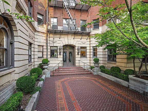 The iconic Historic 705 Davis Building, an address of distinction, quality, & luxury for over a century. This remarkable structure, constructed from steel and concrete, is adorned with exquisite architectural details, including cast terracotta medallions, cast concrete elements, irreplaceable marble and Honudran mahogany, alongside polished brass and bronze accents. Unit 103, a highly sought-after main-floor residence, boasts ceilings that are notably higher than those found on upper levels. With interiors recently restored, this unit exemplifies architectural grandeur with stacked moldings that crown the 11-foot ceilings. Recent upgrades include refinished herringbone parquet oak floors-complementing the tongue & groove oak floors, fresh interior paint, and a newly renovated luxurious marble bathroom accompanied by an adjacent dressing suite. The bathroom serves as a sanctuary, showcasing Kalista and Ann Sacks surfaces including a Neo-marquina marble pin-leg sink accented by Kohler Pinstripe plumbing fixtures. The shower features white Thaeo marble, as well as the wainscoting, enveloping the space in timeless elegance. Additionally, a smaller bedroom, which can accommodate a daybed, has been transformed into a stunning walk-in dressing room. The original closet and built-in wardrobe have been preserved, while new built-ins have been added. A chandelier, complemented by a ceiling medallion, elevates the space. The building features a recently finished mail center equipped w/ electronic parcel vault. Includes a 105 SF storage unit & a dedicated garage space in the attached garage- EV charging is an easy addition. A rooftop deck is perfect for breathtaking 360-degree views of the city, the West Hills, and the surrounding historic neighborhood. With a WalkScore of 99/100, this location offers unparalleled convenience. Well-run HOA! Dues INCLUDE Heat, Hot water, garbage, sewer, water, reserves, hazard insurance and common area maintenance.