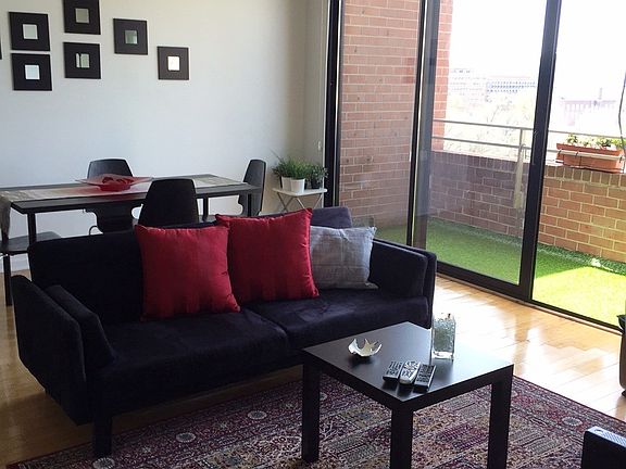 Modern, fully furnished unit on P street in the heart of Dupont Circle available for rent. Unit was recently renovated and has a modern integrated kitchen and living area. It is on the 10th floor with a balcony and beautiful view looking out to Georgetown and Arlington. Wood floors throughout and copious light from balcony and large bedroom windows. There is plenty of storage space in the kitchen, including a pull-out pantry. It also has a walk-in closet in the bedroom, a coat closet, and a built-in mirrored bookshelf. Windows are furnished with roller shades and additional black-out shades in bedroom. Located on P street, 5 min from Dupont Circle metro station and surrounded by restaurants, bars/lounges and shops. Convenience supermarket directly across the street and dry-cleaner connected to the apartment building. Please email any questions or to set up time for viewing. The unit is fully furnished and will come available May 23, 2016. Rent is $2,850/month with cable and internet included. Minimum lease is 6 months. Owner pays for water, gas, cable and internet (wi-fi). Tenant responsible for electricity.