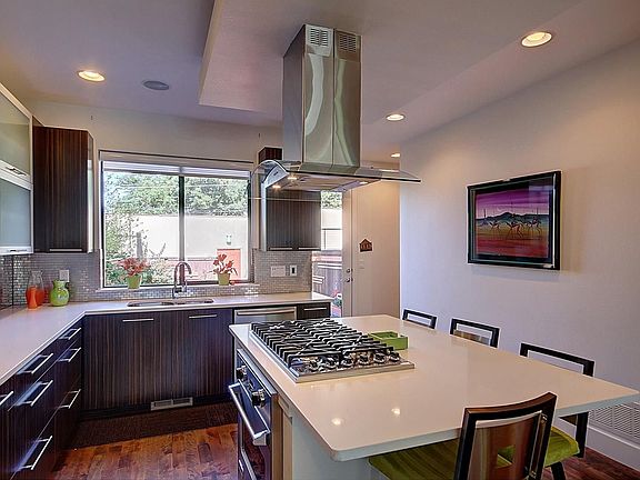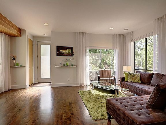 If you want 360 degree views from a rooftop deck, this is it! Updated center unit row home with high quality finishes & windows galore, it feels like a single family home! Beautiful birch hardwood floors on main level are stained in a warm chocolate color, perfectly accenting the pale walls, white counters, stainless steel tile backsplash and stainless appliances. Get ready to entertain, because the kitchen has a 6 burner Viking stove and it opens to a tranquil, perfectly landscaped back patio. On the second level is the master suite, en-suite secondary bedroom, each with its own deck. Laundry is conveniently located between the bedrooms. Head upstairs to the party room (or open bedroom) complete with wet bar & beverage fridge, 3/4 bath & large west-facing deck. One more level up and the views will knock your socks off--mountains, lake & city views! Custom whole house speaker & audio system included. Detached 2 car garage. Two furnaces and a/c units, sump pump. 2 blocks from the lake!