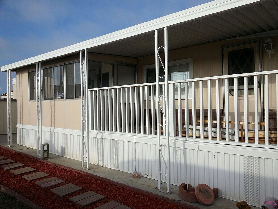 55+ Senior Living in Sunny Acres MHP. This charming and bright home has 2 bedrooms and 1 bath. There is a covered half porch, stack-able washer/dryer and refrigerator. Beautiful weather all year long. Park offers a pool and clubhouse for entertaining.
