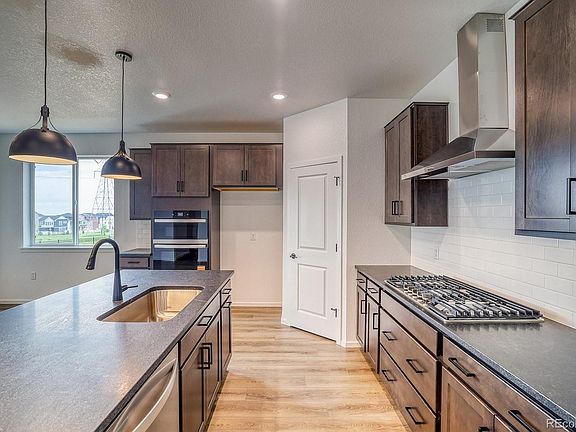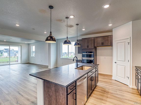 We are proud to present this lovely Pulte Homes ranch style home in the beautiful Harvest Crossing neighborhood, one of Aurora's premier new communities! This is a stunning suburban area with ample green space. The Manzanita floor plan is one of Pulte's favorite house plans! 3 bedrooms, 2-bathroom layout with a practical main floor Den offers the perfect work from home setup or formal Gathering Area. The spacious kitchen with kitchen island, flows perfectly into the Café and Gathering Room - great entertaining space! This NEW BUILD home offers an open floor plan with exceptional finishes throughout. Main-level primary bedroom offers a gorgeous ensuite bath with dual sinks, tile flooring, shower enclosure, and huge walk-in closet! Gathering Room is pouring with natural light. Chef’s kitchen features beautiful cabinets with granite countertops, Stainless Steel appliances, 5-burner Gas Cooktop, Hood, microwave, and oven. Main floor laundry offers great convenience! Great curb appeal with comfortable 2 car garage. Eye catching front entrance, frame/stone exterior. Front landscaping is included. Enjoy a private yard ready for personalization post-close! Everything is NEW, enjoy our complete builder home warranty that brings your tremendous peace of mind. Spacious secondary bedrooms with adjacent full hall bath. The unfinished basement offers a large open storage room and ample space for future finish if desired. Live close to shopping, dining, outstanding schools, trails & easy access to Denver/DIA. Community offers playground, and trails throughout this thriving part of town. You're a short drive to both Aurora Reservoir or jump over to Cherry Creek Reservoir & State Park both offering camping, fishing, and boating and amazing recreational opportunities! Don't miss this amazing home in an amazing community!