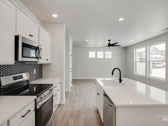 Get $25K now thru 1/31 with the New Home Era bonus! Step into a brand new home in Meridian, Idaho and enjoy its benefits and stress free living! The Lochsa 1678 floorplan is a two-story home that seamlessly blends functionality with modern design. Downstairs, you'll discover a practical half bathroom, offering convenience for both residents and guests. The hallway leads you into the heart of the home, an open-concept living area where the kitchen and living room come together, creating a welcoming space for gatherings and daily life. The kitchen includes stylish solid surface countertops, stainless steel appliances and a kitchen island. An additional full bathroom serves the two generously-sized bedrooms, streamlining morning routines. The primary suite is a standout feature, complete with a walk-in closet for your wardrobe and storage needs. Photos are of actual home!