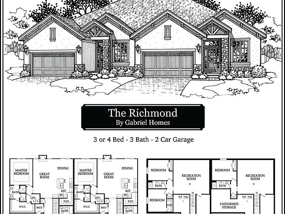 Plan Pricing is based off the average lot cost of remaining lots. Paired Villa Lot average is $65,000; Single Villa Lot average is $77,000. Gabriel Homes' paired-villa Richmond provides customers better value while maintaining all of the luxuries found in the single villas. This wonderful open floor plan greets you with soaring 10ft ceilings and rustic white oak hardwood floors (3" rustic hickory or rustic walnut also available at no additional cost). Travel in to the heart of the home and prepare to be inspired. Let your inner chef come to life in the well-designed kitchen featuring custom Alder cabinets, granite counters, large walk-in pantry, over-sized center island, and even soft close drawers! Furthermore, the well appointed floor-to-ceiling trim and fireplace surround guide your eyes throughout the space, highlighting the builder's meticulous attention to detail!Other convenience-minded designs include main level master suite with access from master closet to laundry, and main level secondary bedroom/flex office. Lower level complete with finished rec space, 3rd & 4th bedrooms, full bath, and plenty of storage space!Popular Richmond reverse story and a half by Gabriel Homes. Wonderful open plan with beautiful kitchen w/ painted custom cabinets, granite counter, walk in pantry, center island, soft close drawers. Hardwood floors though out Kitchen, Entry and Great Room. Master and Second BR/Office on first floor with upgraded trim.
